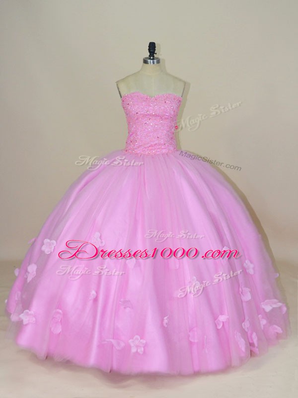 Sweetheart Sleeveless Tulle Sweet 16 Dress Beading and Hand Made Flower Lace Up