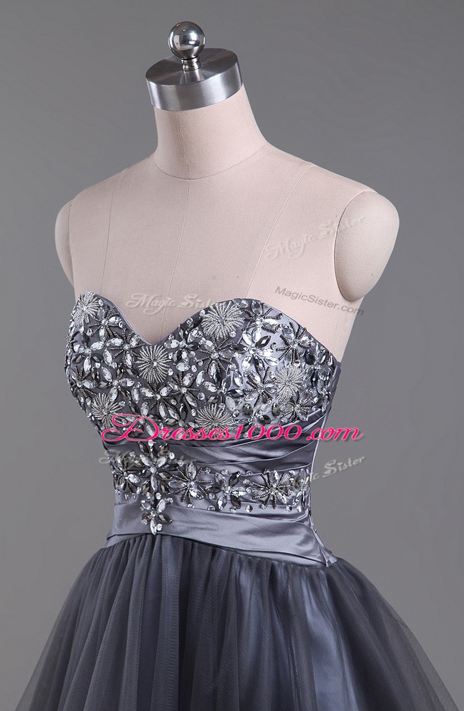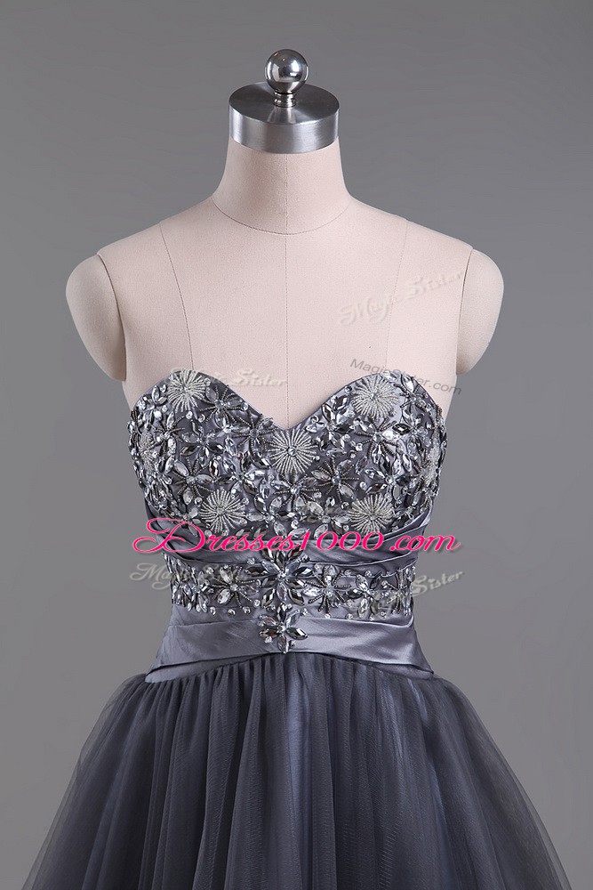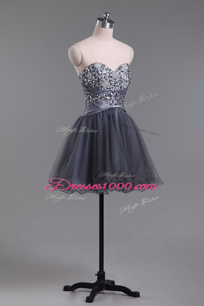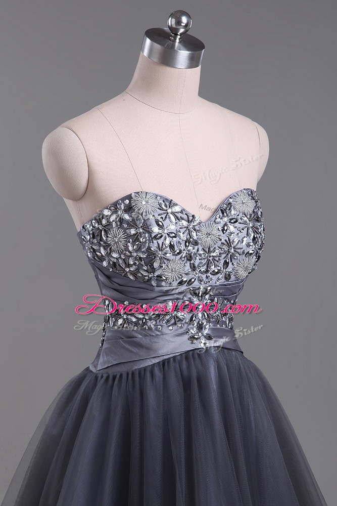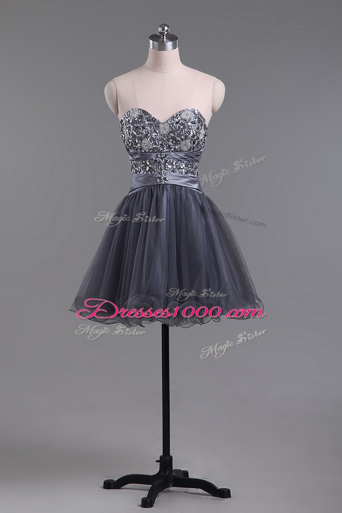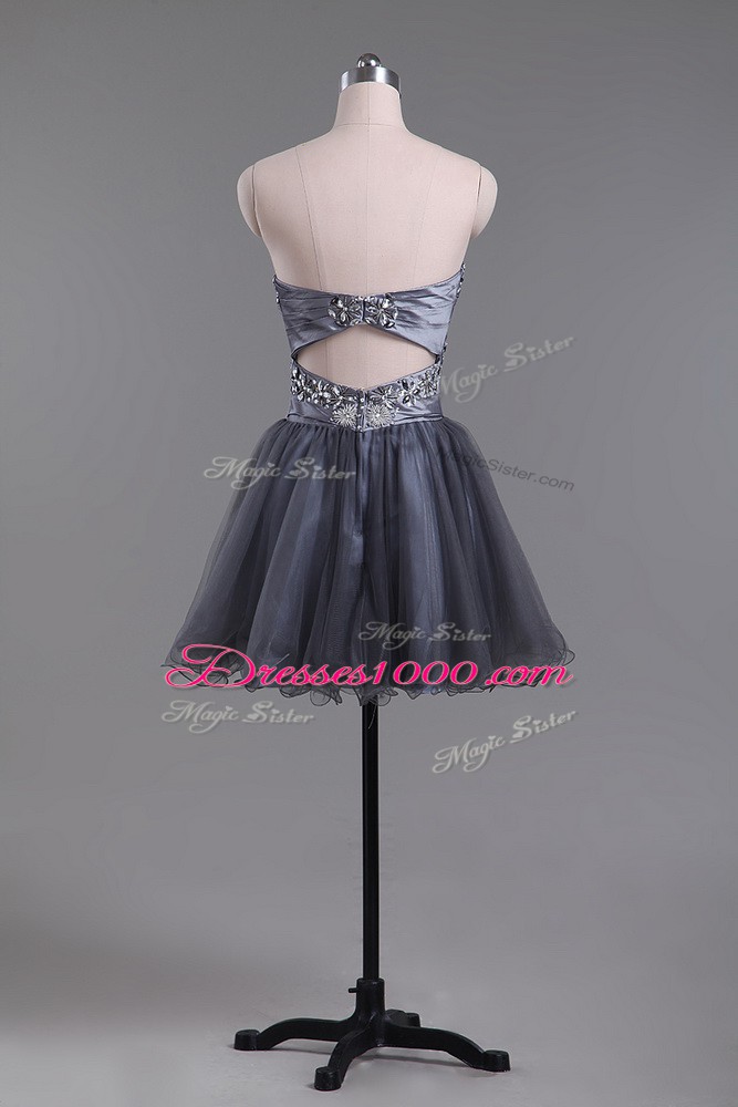 Low Price Grey Sleeveless Mini Length Beading Zipper Party Dress