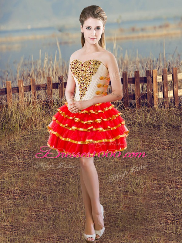 Best Selling Sleeveless Lace Up Mini Length Beading and Ruffled Layers Party Dresses