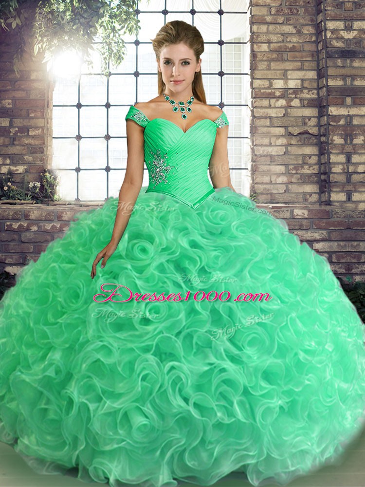 Luxurious Off The Shoulder Sleeveless Fabric With Rolling Flowers Quinceanera Dress Beading Lace Up