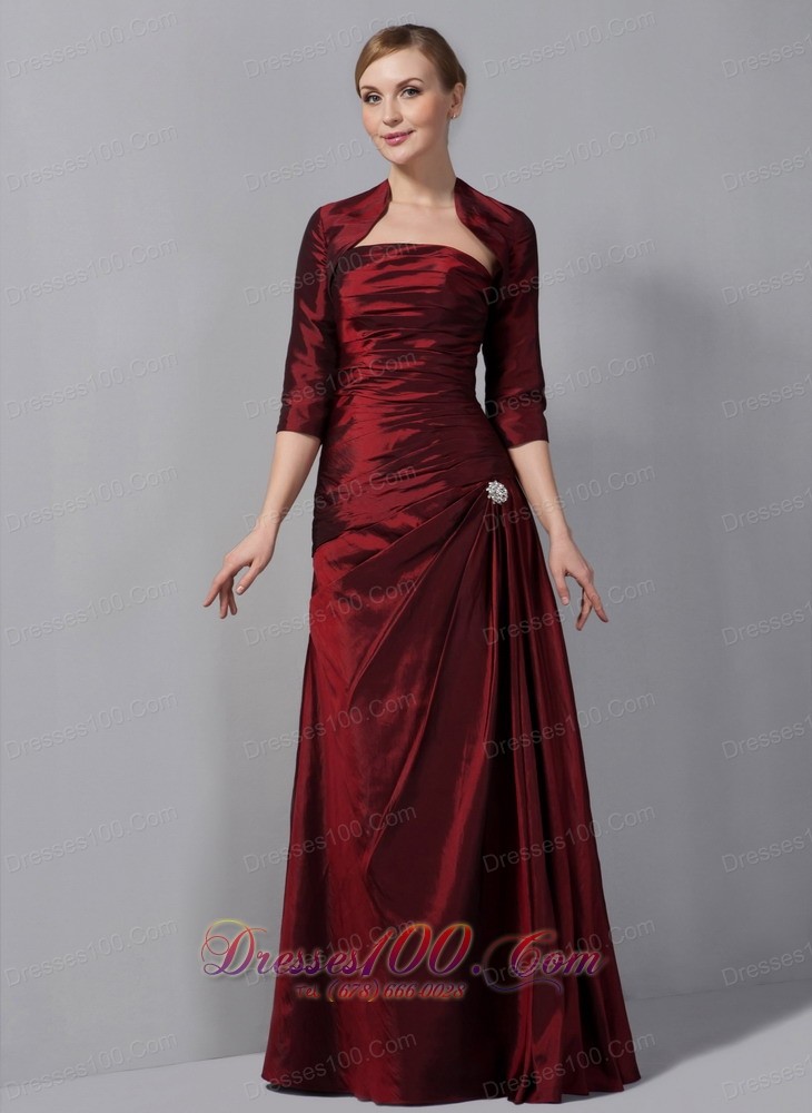 Burgundy Ruch Taffeta Mother Of The Bride Dress