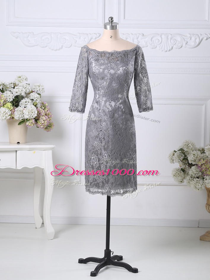 Best Selling Grey Zipper Prom Party Dress Lace Half Sleeves Knee Length