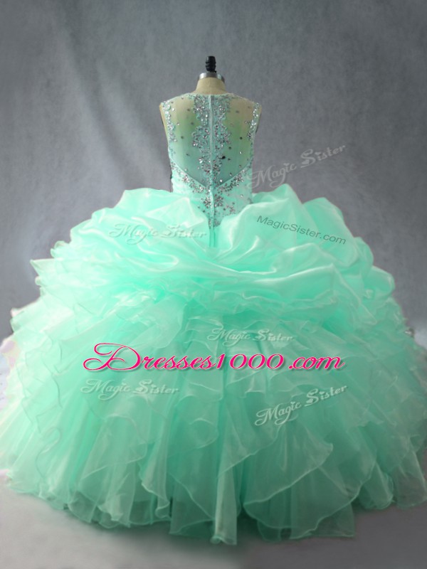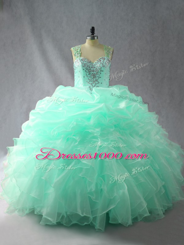 Graceful Apple Green Sleeveless Beading and Ruffles and Pick Ups Floor Length Quinceanera Dresses