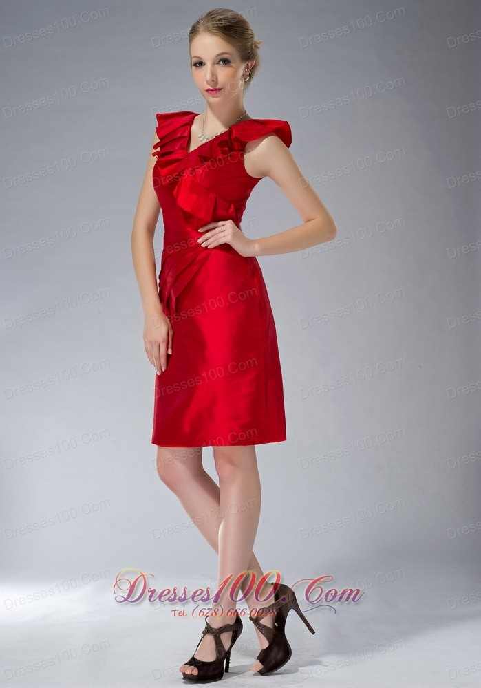 Ruffles V-neck Red Mini-length Mother Of The Dress
