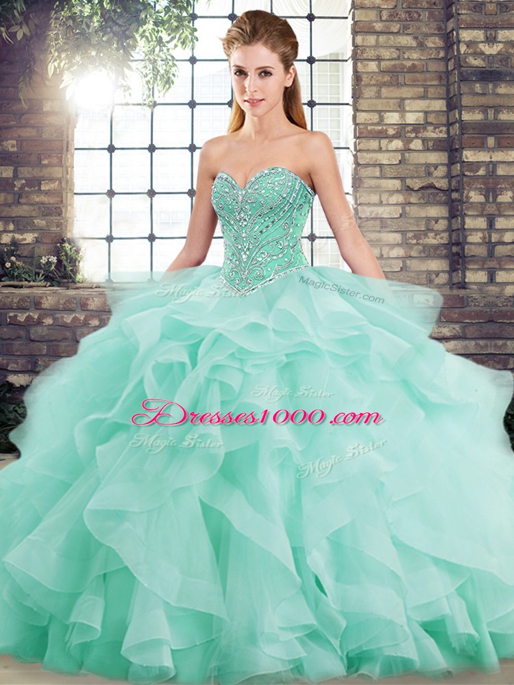 Fantastic Apple Green Ball Gowns Beading and Ruffles Sweet 16 Dress Lace Up Tulle Sleeveless