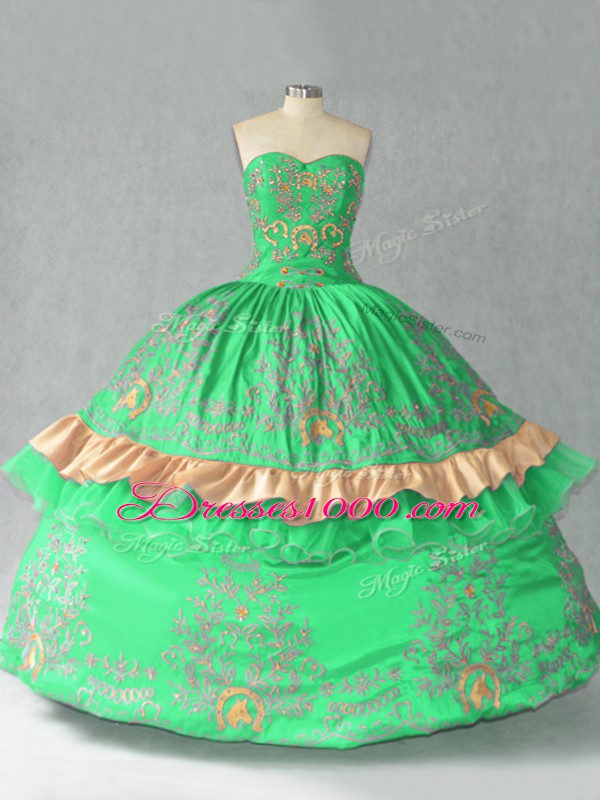 Ball Gowns 15th Birthday Dress Green Sweetheart Organza Sleeveless Floor Length Lace Up