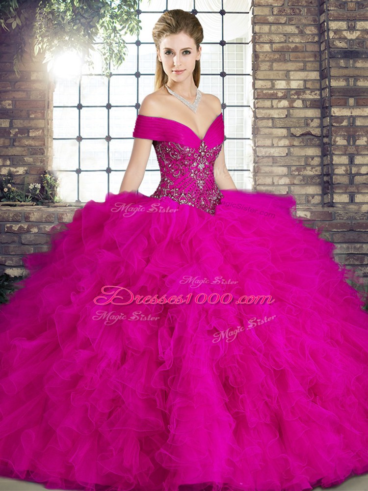 Tulle Sleeveless Floor Length 15 Quinceanera Dress and Beading and Ruffles