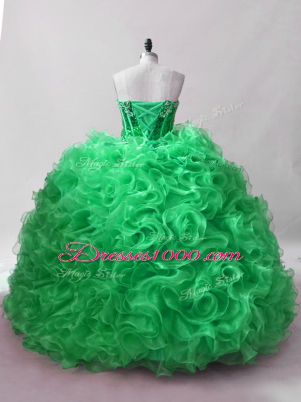 Green Sleeveless Floor Length Sequins Lace Up Sweet 16 Dress