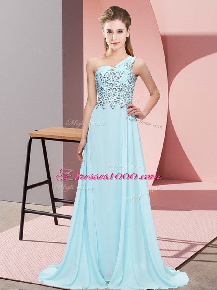 Shining Light Blue One Shoulder Side Zipper Beading Homecoming Dress Sleeveless