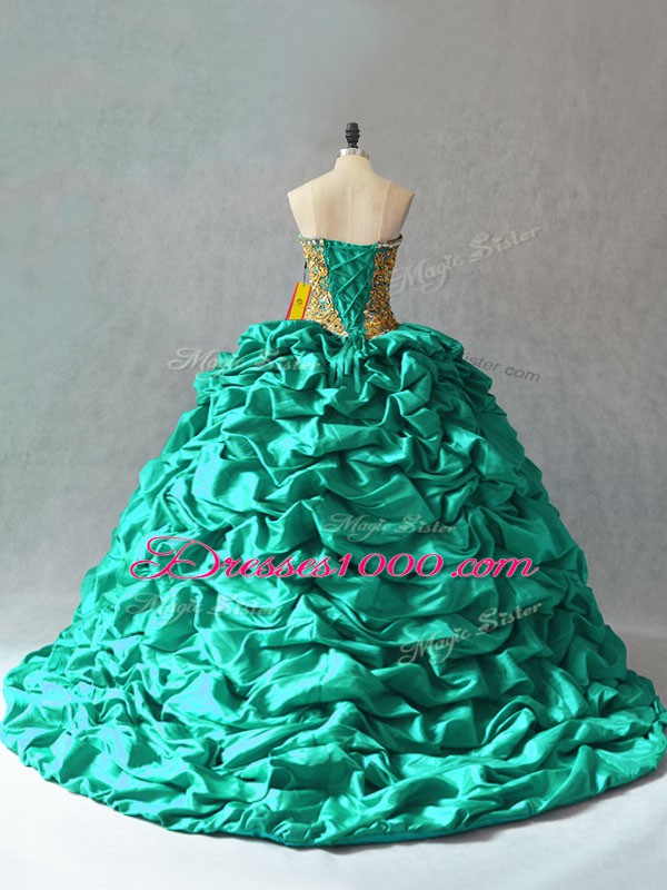 Sleeveless Beading and Pick Ups Lace Up Quinceanera Dress with Turquoise Brush Train