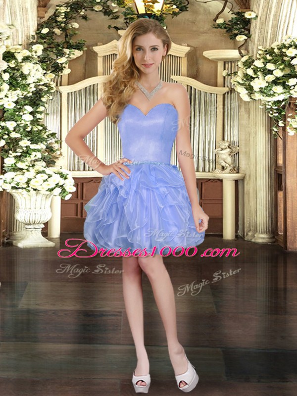 Unique Lavender Organza Lace Up Sweetheart Sleeveless Mini Length Prom Homecoming Dress Ruffles