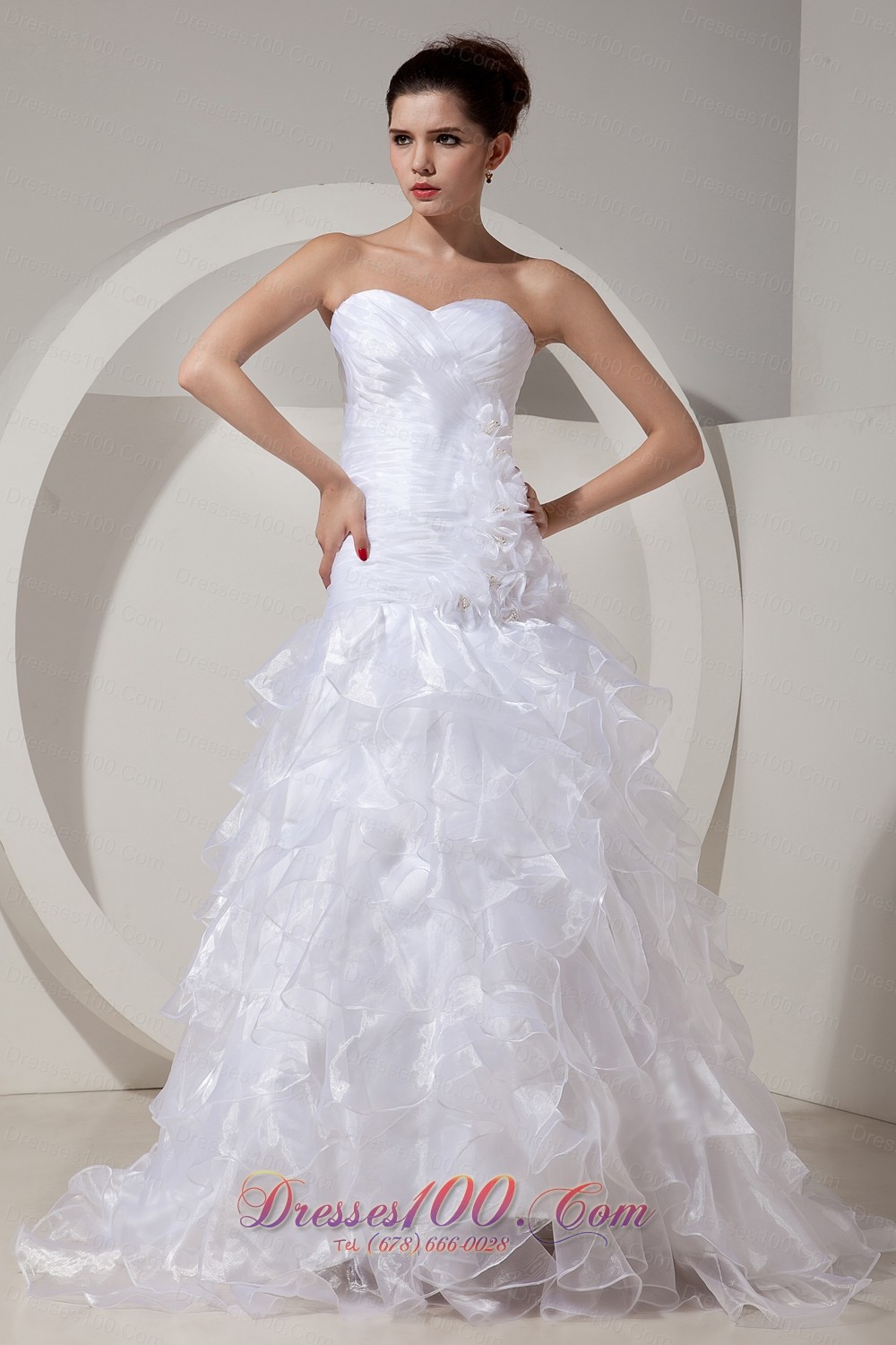Ruffles Sweetheart Organza Princess Bridal Gown Handle Flowers