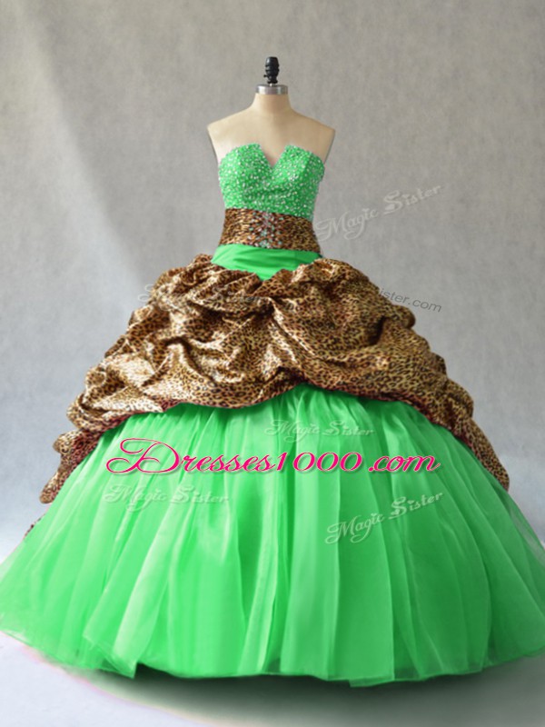 Low Price Ball Gowns V-neck Sleeveless Organza Lace Up Beading and Pick Ups Vestidos de Quinceanera