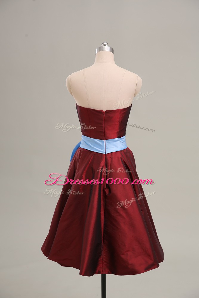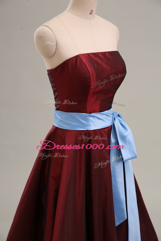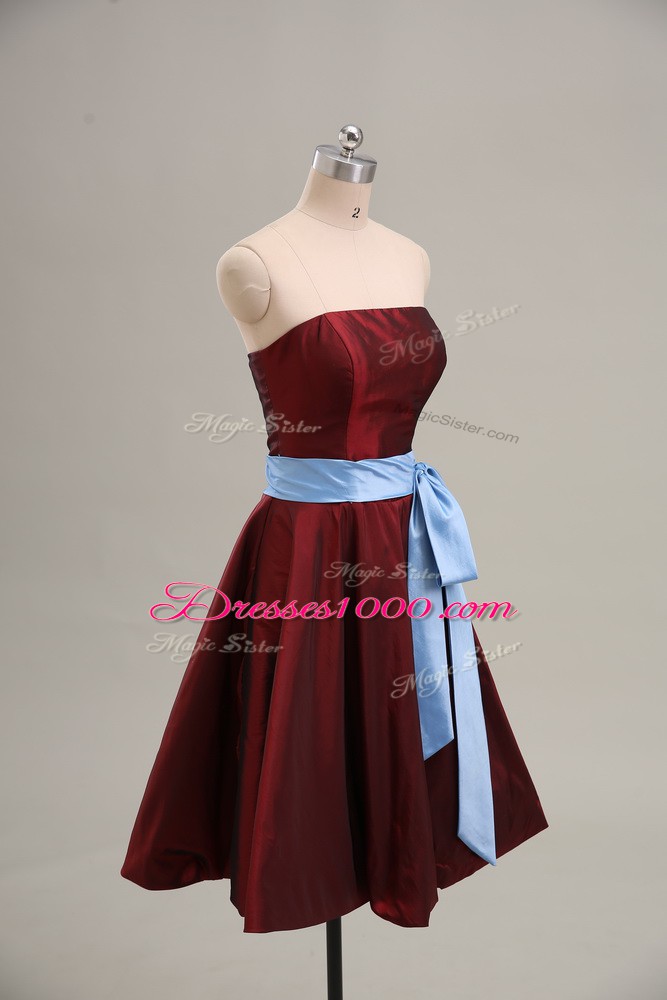 Popular Wine Red A-line Sashes ribbons Prom Homecoming Dress Zipper Taffeta Sleeveless Mini Length