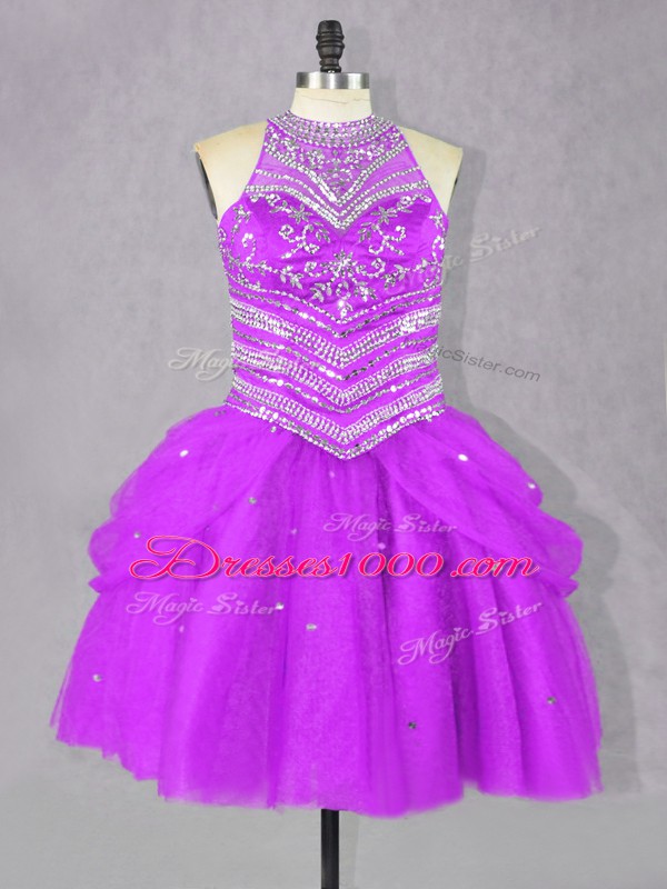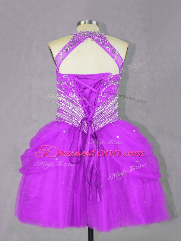 Customized Fuchsia Sleeveless Beading Mini Length Teens Party Dress