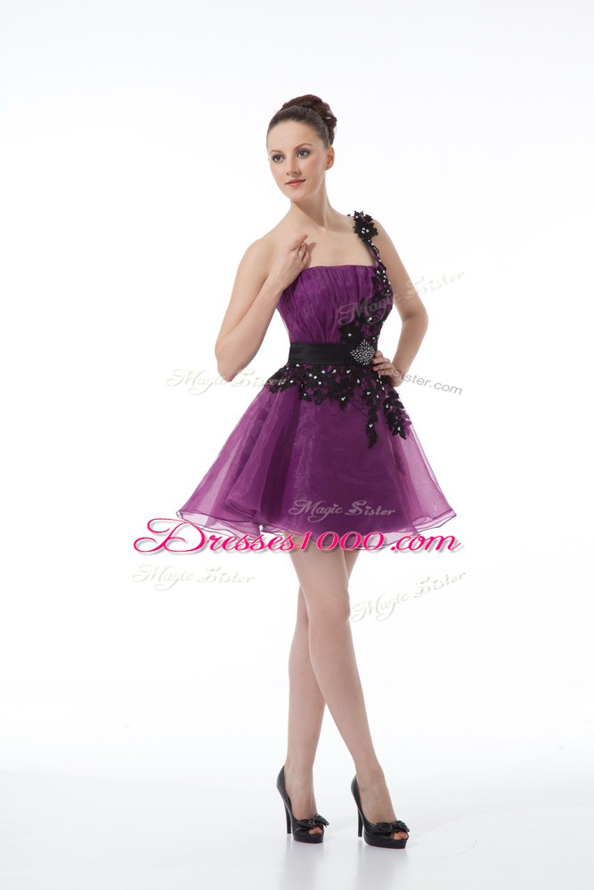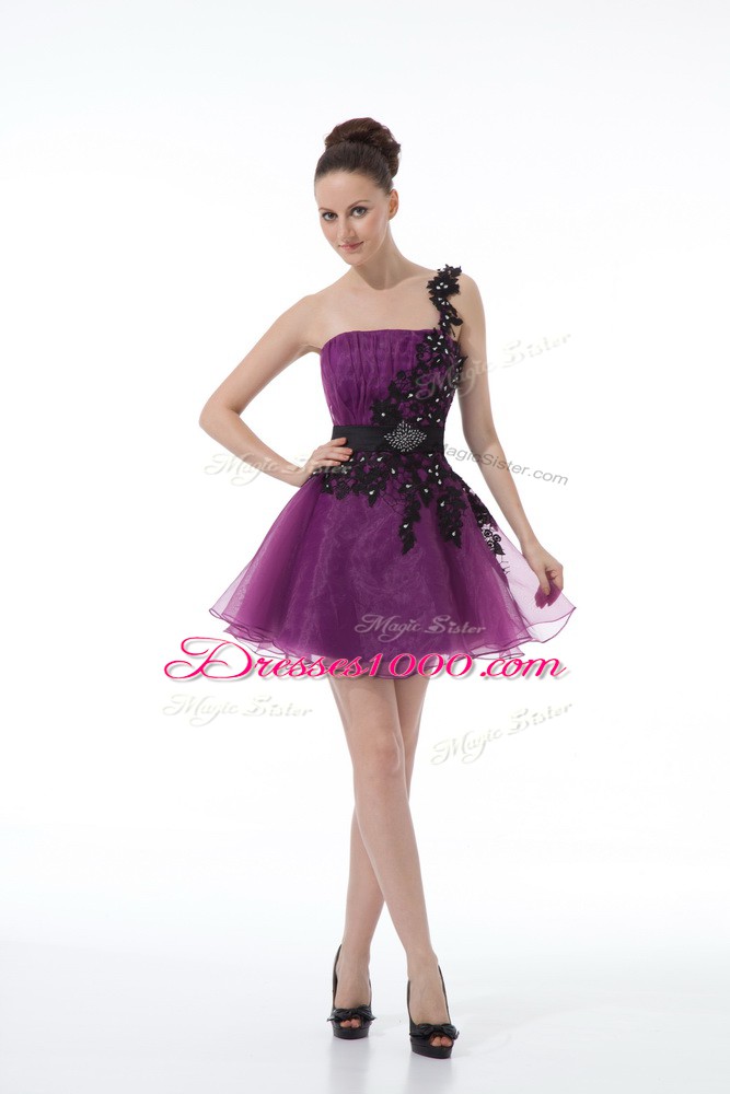 One Shoulder Sleeveless Organza Dress for Prom Beading and Lace and Appliques Zipper