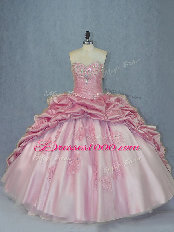 Flirting Pink Sleeveless Tulle Brush Train Lace Up Quinceanera Gown for Sweet 16 and Quinceanera