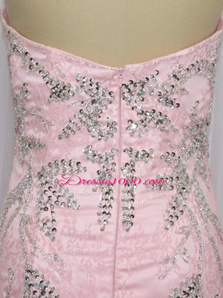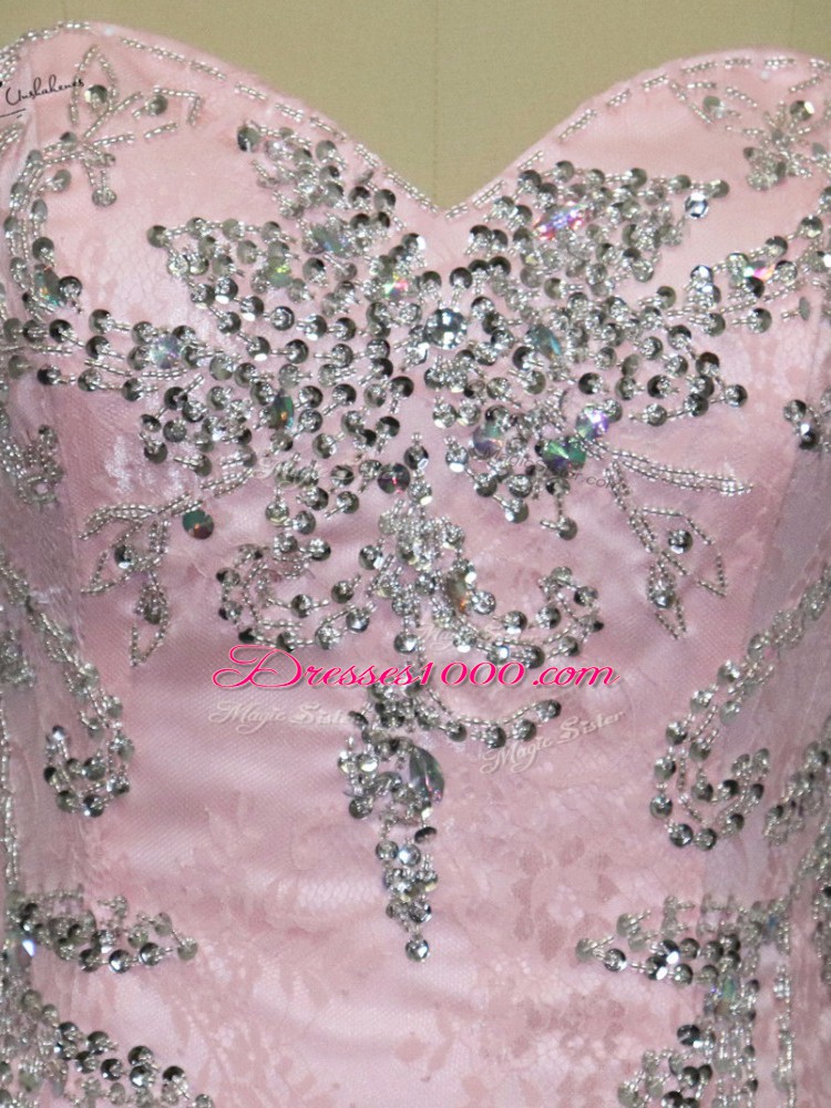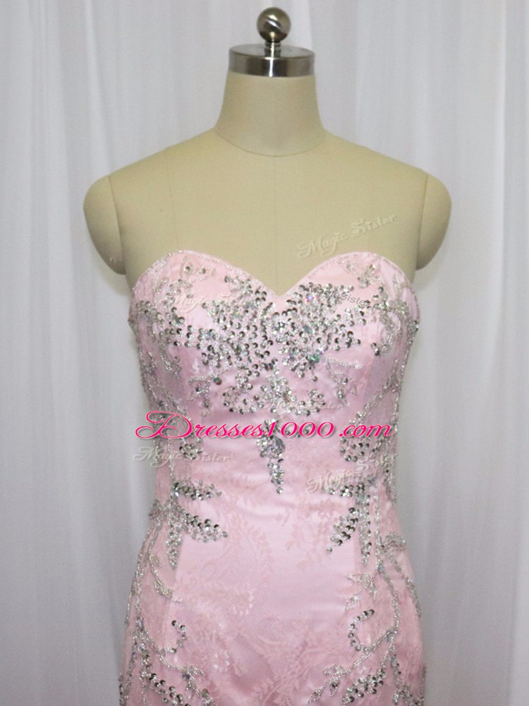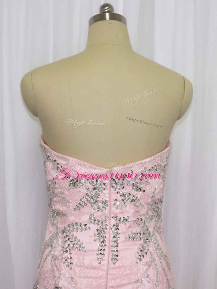 Pink Zipper Sweetheart Beading Party Dress for Toddlers Tulle Sleeveless Brush Train