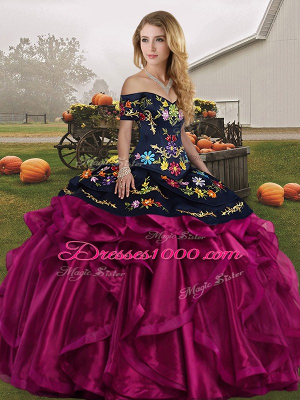 Sleeveless Lace Up Floor Length Embroidery and Ruffles Sweet 16 Quinceanera Dress