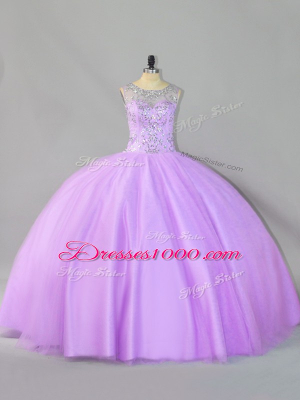 Great Sleeveless Floor Length Sequins Zipper Sweet 16 Dresses with Lavender