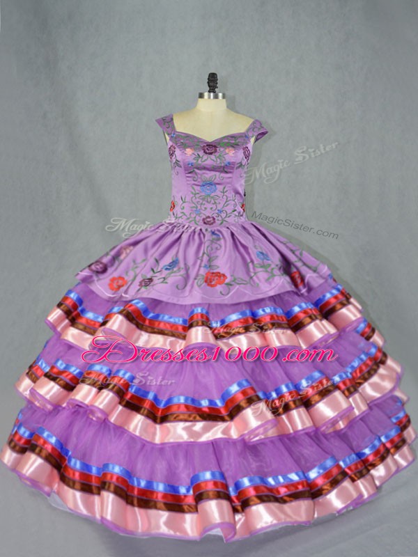 Exceptional Purple Lace Up Sweet 16 Dresses Embroidery and Ruffled Layers Sleeveless Floor Length