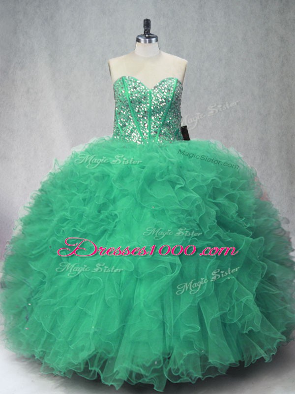 Vintage Green Sleeveless Tulle Lace Up 15th Birthday Dress for Sweet 16 and Quinceanera