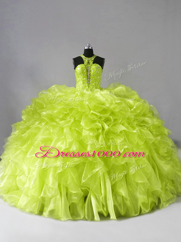 Fine Yellow Green Sleeveless Beading and Ruffles Zipper 15 Quinceanera Dress