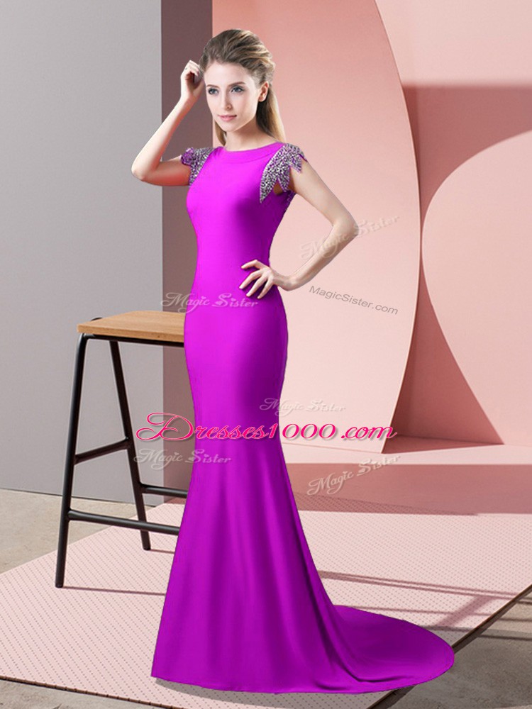 Mermaid Short Sleeves Fuchsia Going Out Dresses Brush Train Backless