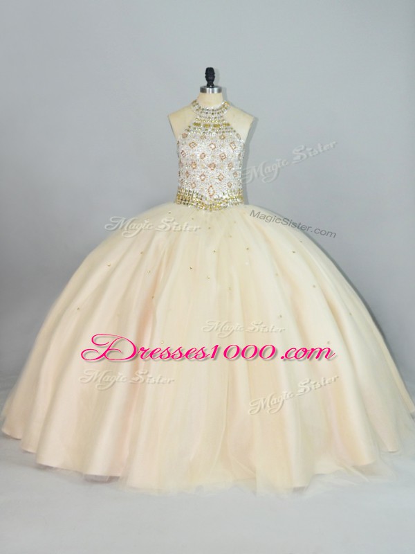 Fashion Floor Length Ball Gowns Sleeveless Champagne Quinceanera Gown Lace Up