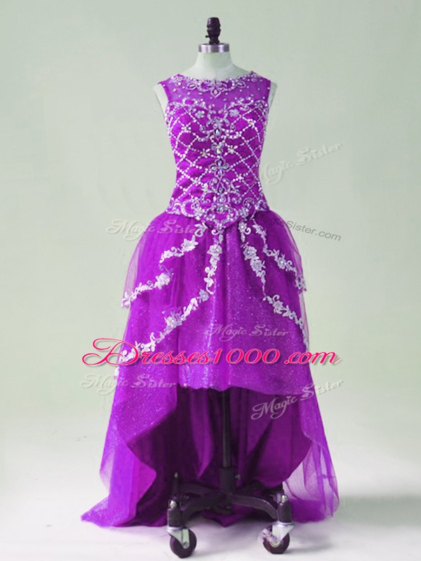 Purple Scoop Zipper Beading and Appliques Going Out Dresses Sleeveless