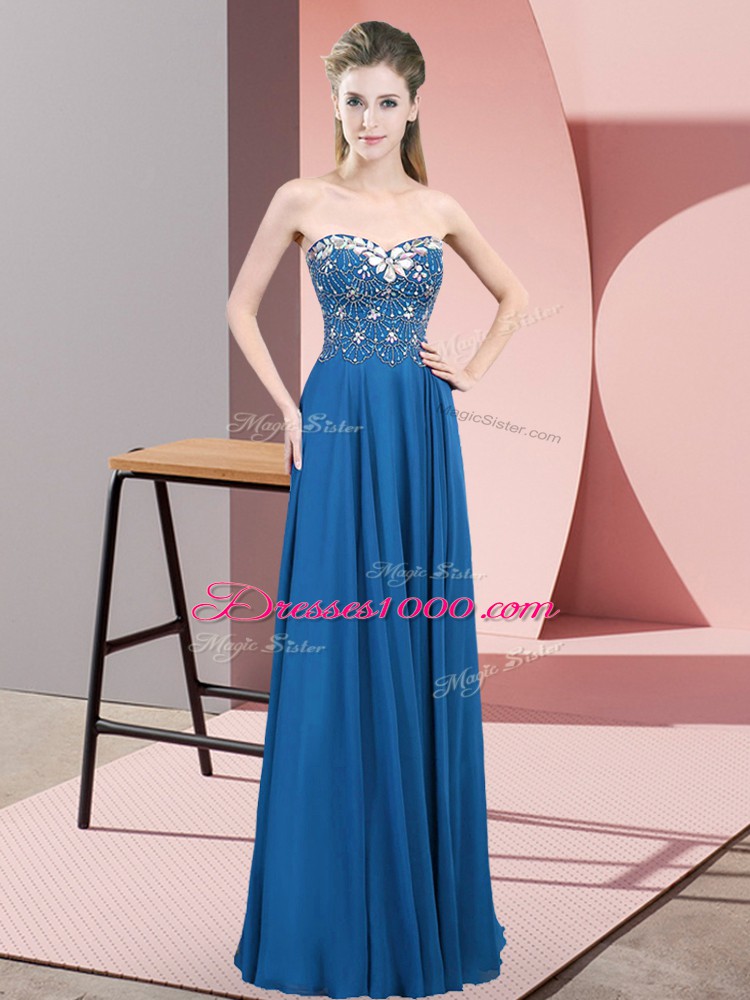 Blue Chiffon Zipper Sweetheart Sleeveless Floor Length Glitz Pageant Dress Beading