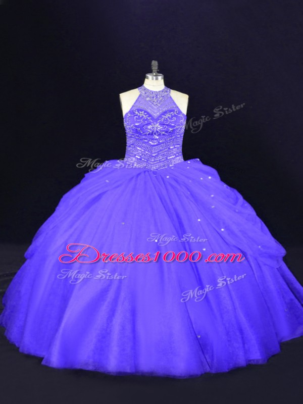 High End Purple Sleeveless Beading Floor Length Sweet 16 Quinceanera Dress