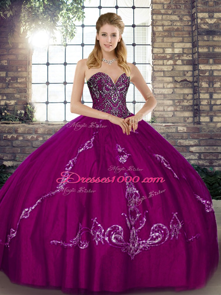 Floor Length Fuchsia Quince Ball Gowns Sweetheart Sleeveless Lace Up