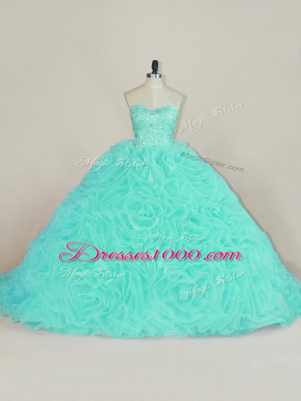 Aqua Blue Sweetheart Neckline Beading and Ruffles Vestidos de Quinceanera Sleeveless Lace Up