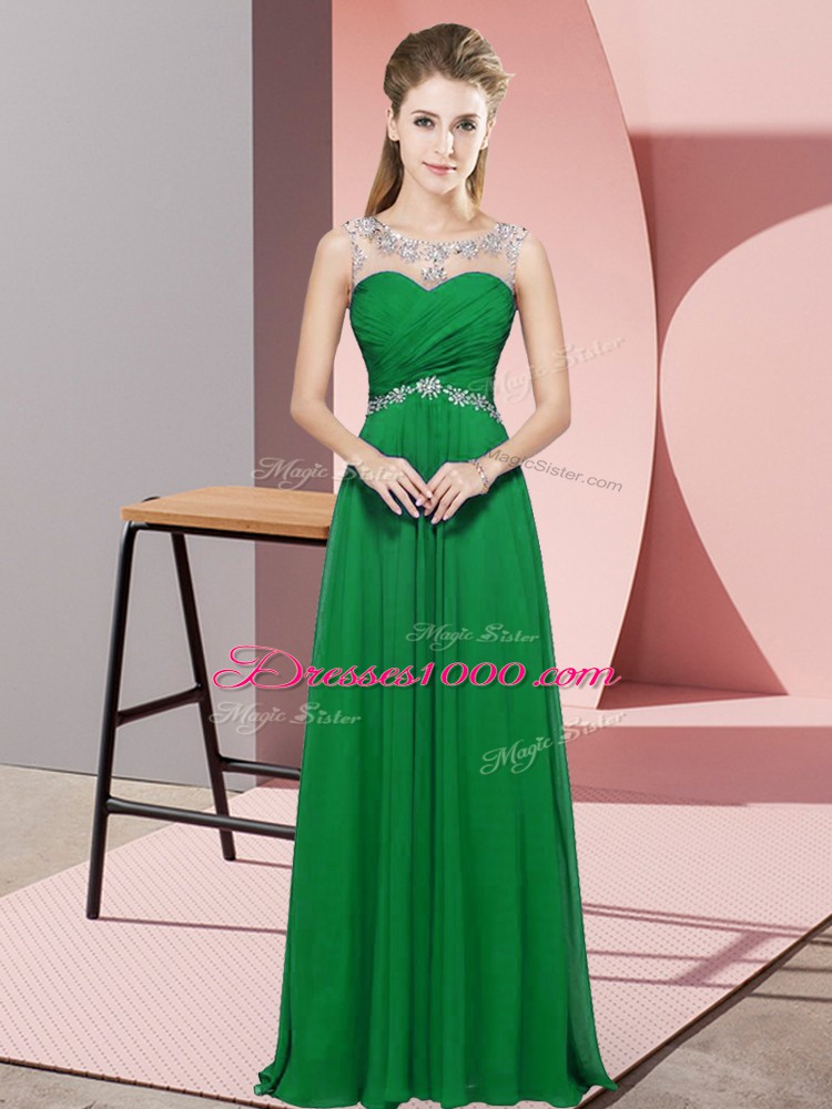 Free and Easy Green Chiffon Backless Pageant Dress for Teens Sleeveless Floor Length Beading