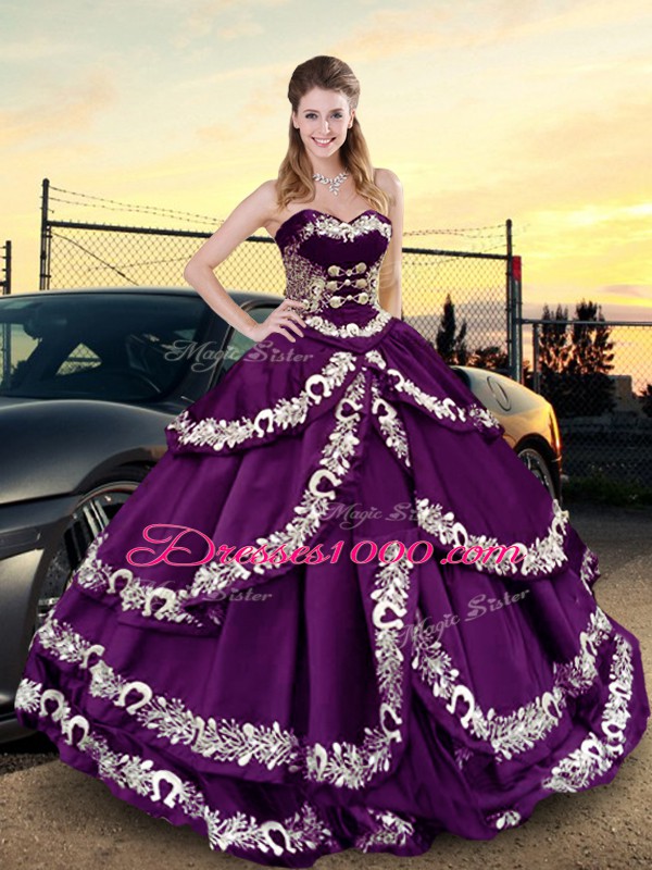 Pretty Floor Length Ball Gowns Sleeveless Purple Quinceanera Gowns Lace Up
