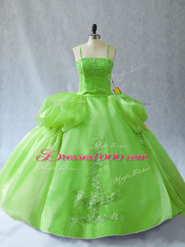 Organza Lace Up Quinceanera Dress Sleeveless Floor Length Appliques