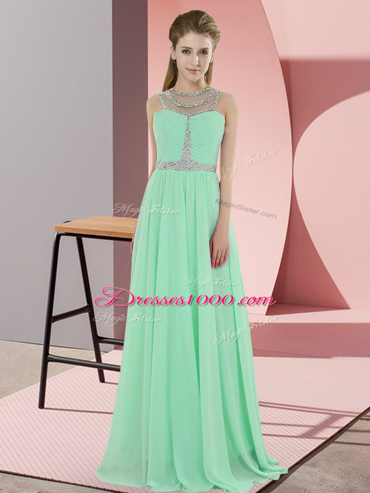 Amazing Chiffon Scoop Sleeveless Zipper Beading Prom Party Dress in Apple Green