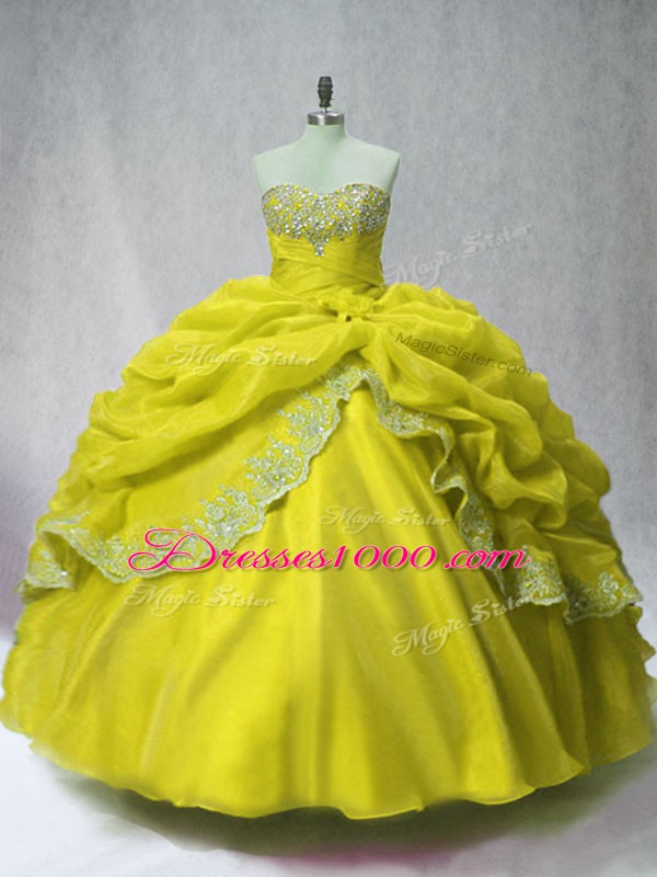 Sleeveless Floor Length Beading and Appliques and Pick Ups Lace Up Sweet 16 Dress with Olive Green
