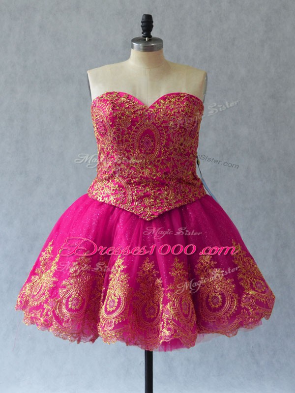 Custom Made Fuchsia Sweetheart Lace Up Appliques and Embroidery Hoco Dress Sleeveless