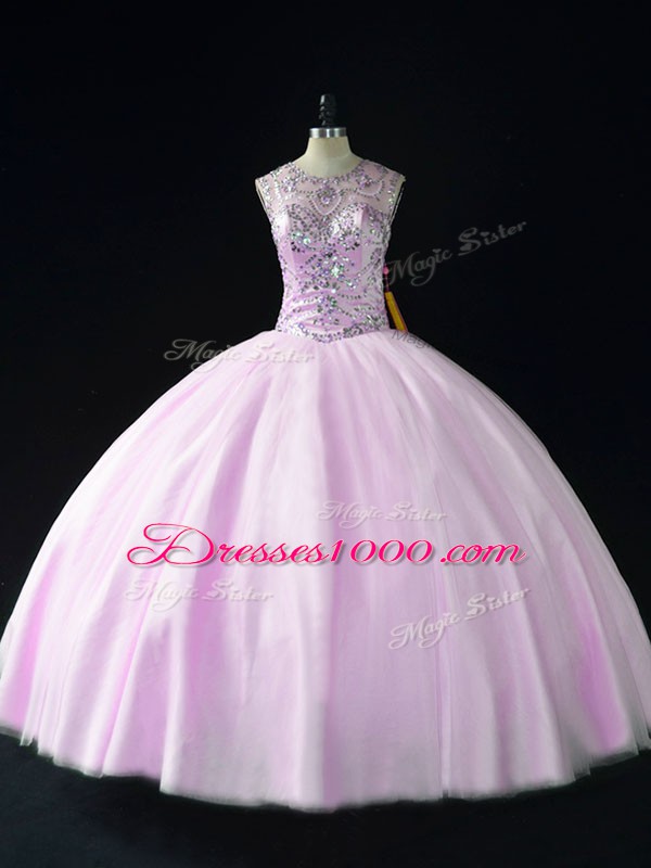 Lilac Sleeveless Tulle Lace Up 15 Quinceanera Dress for Sweet 16 and Quinceanera
