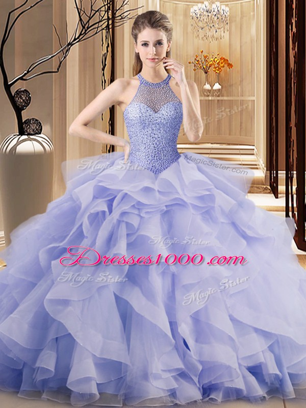 Pretty Lavender Sleeveless Organza Brush Train Lace Up Quinceanera Dresses for Sweet 16 and Quinceanera