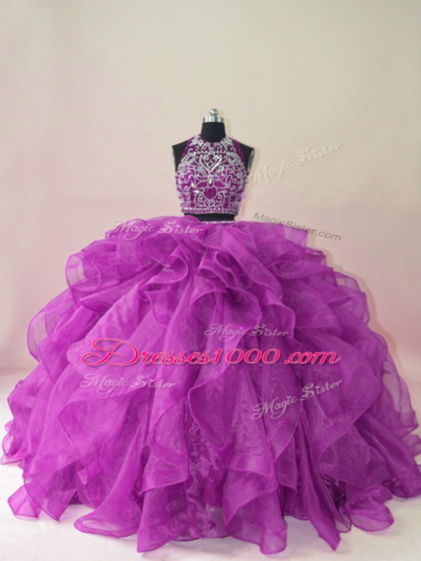 Edgy Sleeveless Brush Train Beading and Ruffles Backless Quinceanera Gowns