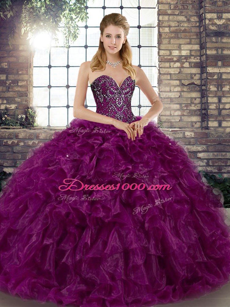 Organza Sweetheart Sleeveless Lace Up Beading and Ruffles Quinceanera Dresses in Purple