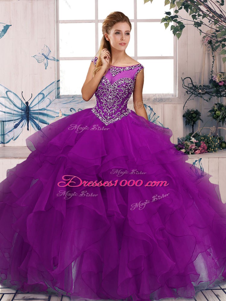 Purple Sleeveless Beading and Ruffles Floor Length Sweet 16 Quinceanera Dress
