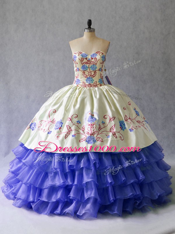 New Arrival Blue Lace Up Sweetheart Beading and Embroidery 15th Birthday Dress Satin and Organza Sleeveless