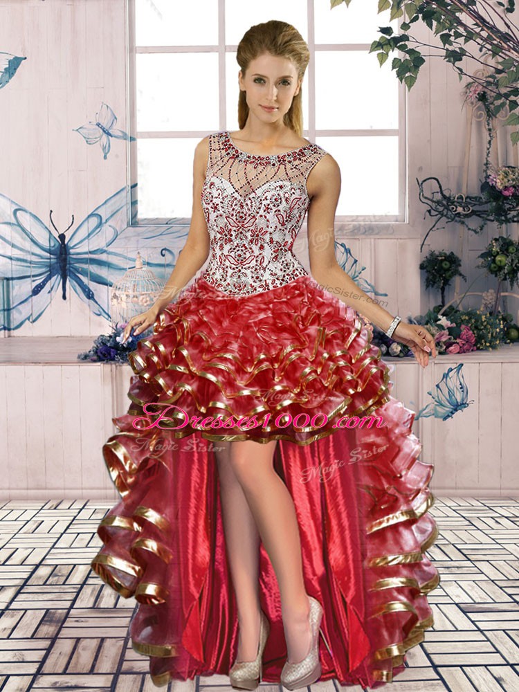 Red Sleeveless Beading and Ruffled Layers High Low Pageant Dress for Teens