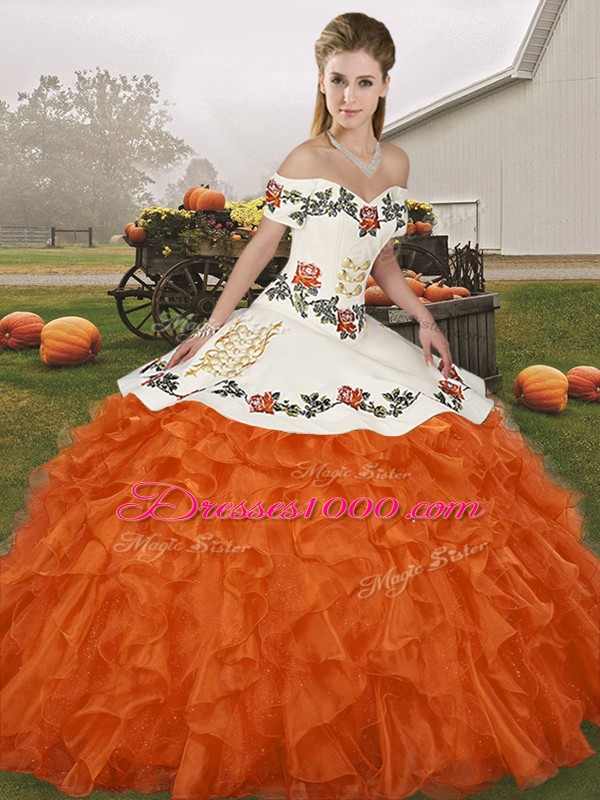 Organza Sleeveless Floor Length Quinceanera Dresses and Embroidery and Ruffles