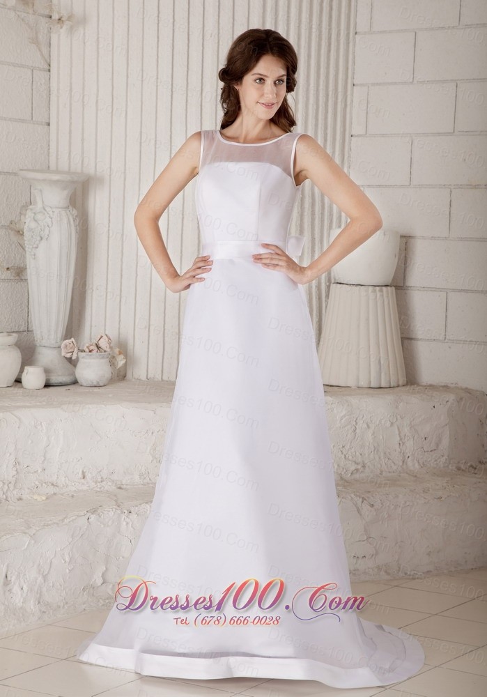 Scoop Neck Brush Train Organza Bridal Gown Floor-length