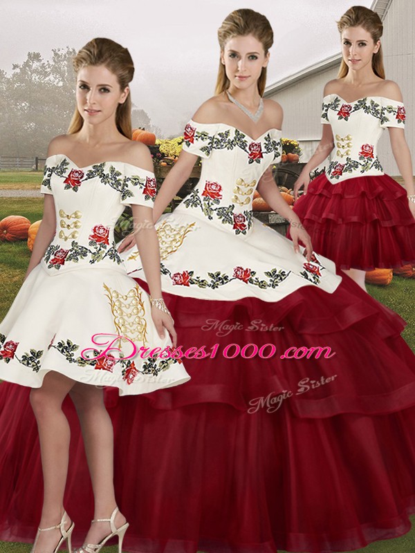Ball Gowns Sleeveless Wine Red Sweet 16 Dress Brush Train Lace Up